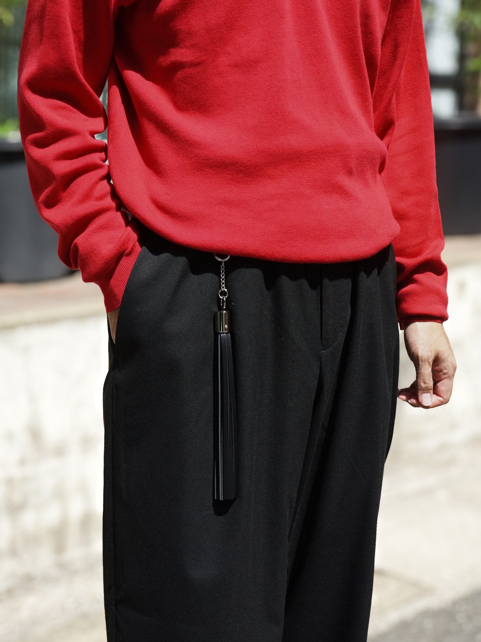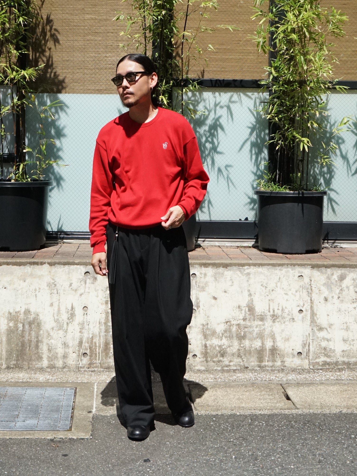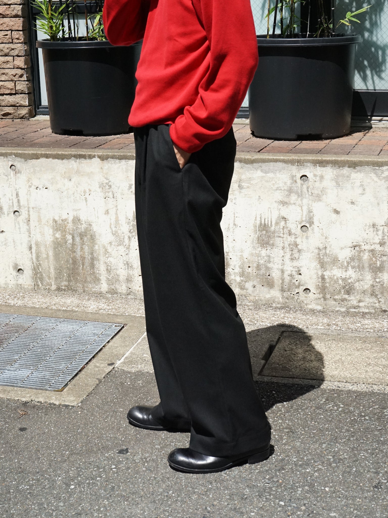 微起毛を施した、ポリエステルレーヨン地で製作したワイドシルエットのイージーパンツです。 ウエストはゴムとスピンドルで調整が可能、ワンタックをいれ、ゆとりを持たせています。 前開きにはファスナーがついております。 様々なスタイリングに合わせやすい、万能パンツです。