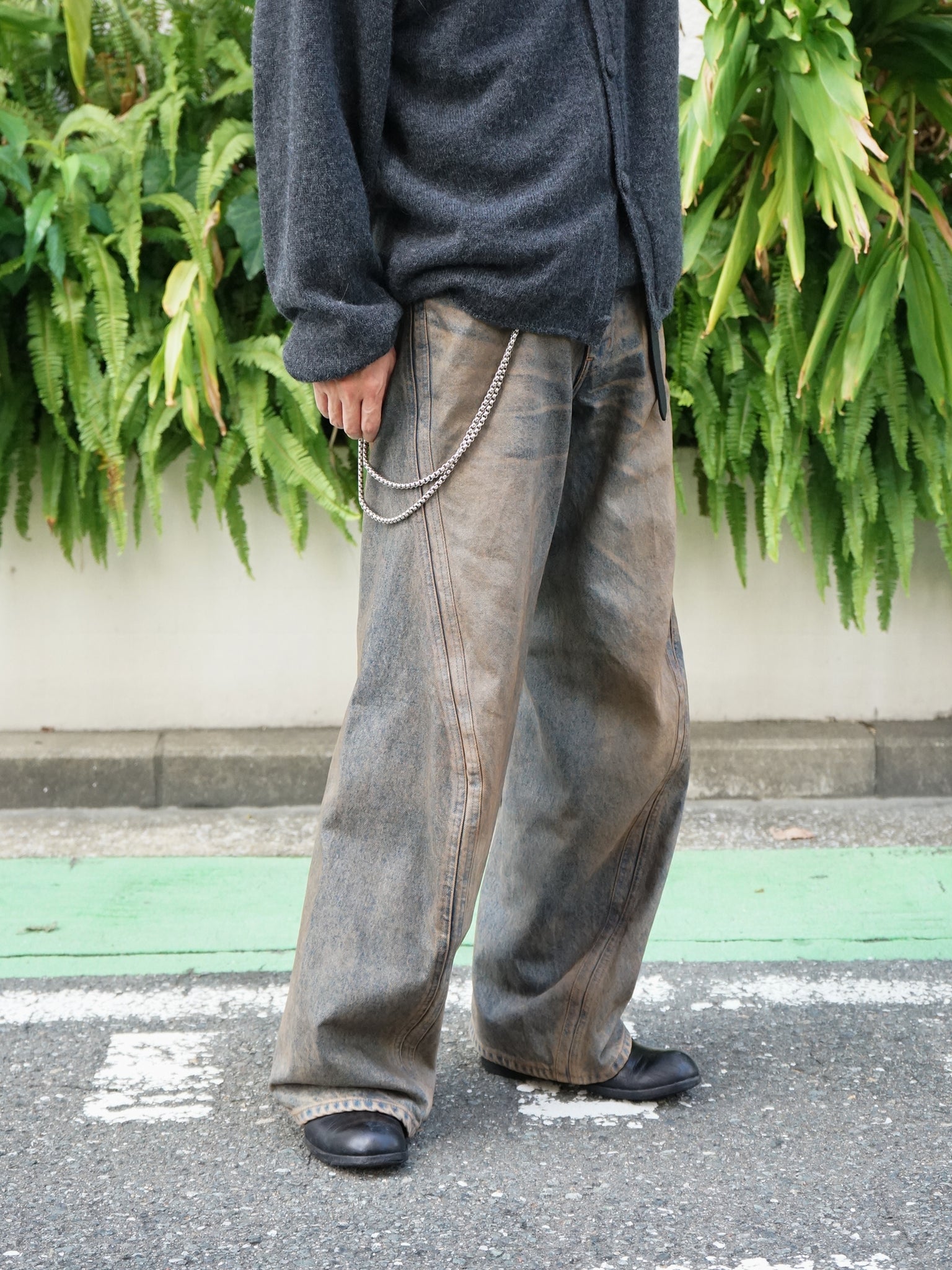 A classic item from NVRFRGT [Never Forget], 3D TWISTED WIDE LEG JEANS.